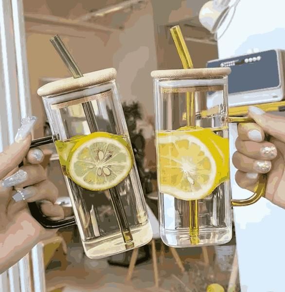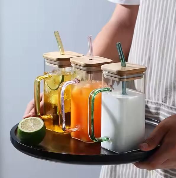 Product Name: Square glass wood cap with straw (Pack of 1)